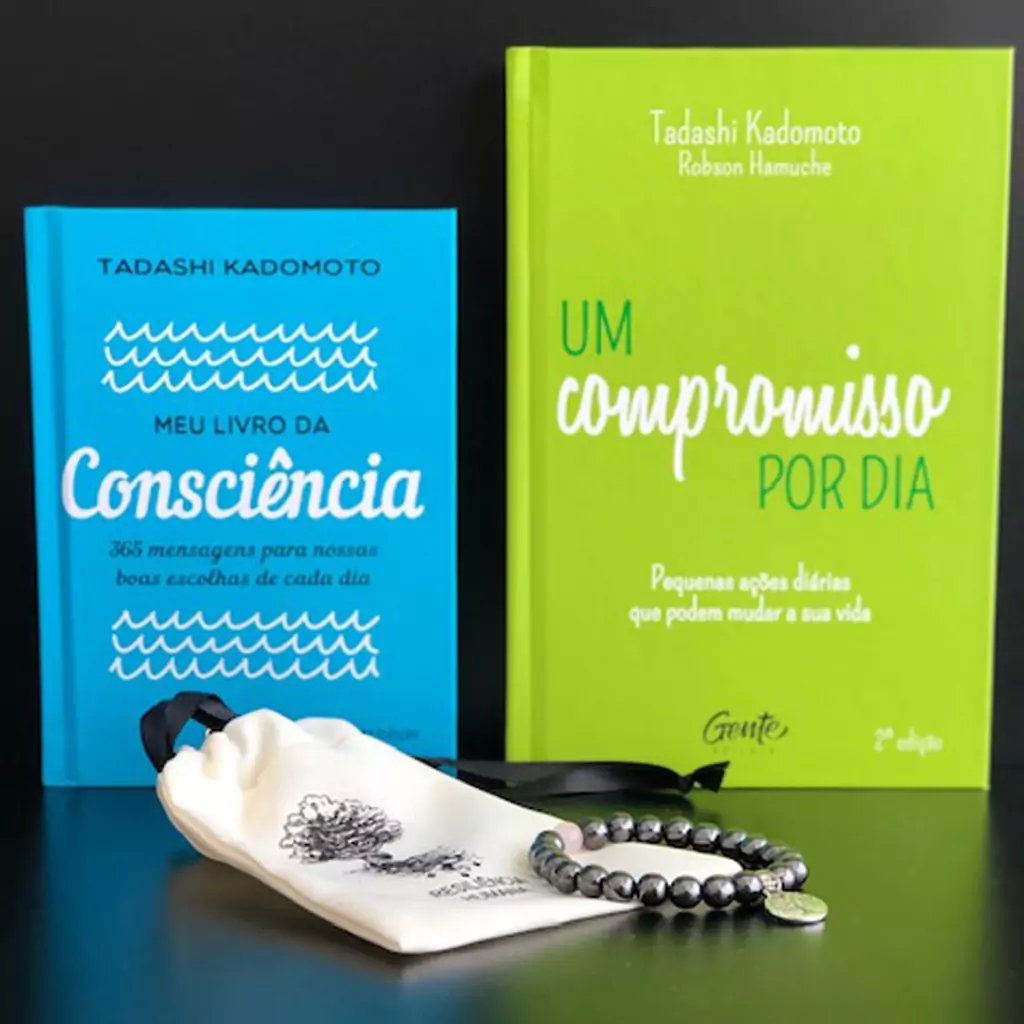 O Kit é composto por: MEU LIVRO DA CONSCIÊNCIA / UM COMPROMISSO POR DIA E PULSEIRA DE HEMATITA e FRETE GRÁTIS BRASIL