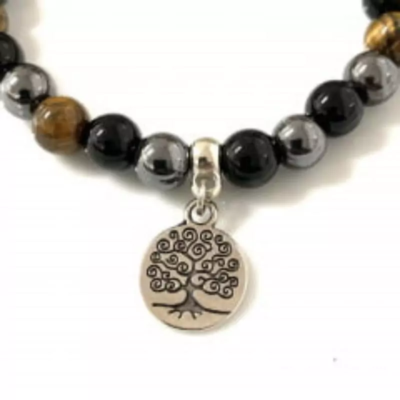 1 Pulseira de 25 contas e pingente de niquel arvore