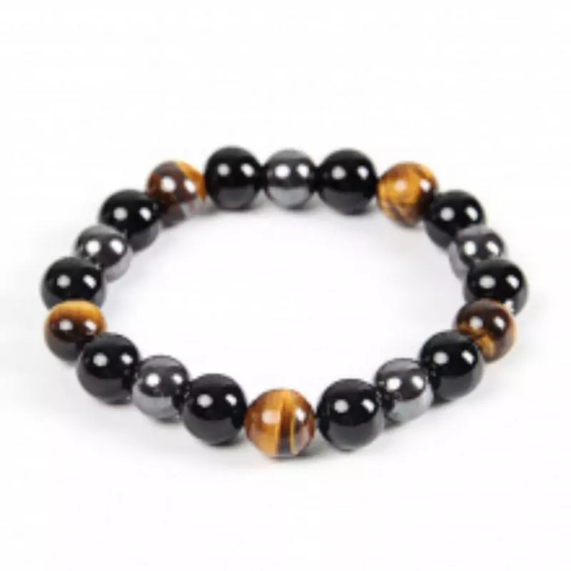 Fortíssima - Juntas são capazes de estimular atitudes positivas mesmo nas circunstâncias mais difíceis, pois incentiva o altruísmo e nos ajuda a encontrar soluções para os problemas mais complicados. No corpo físico esta poderosa pedra de purificação fortalece o sistema imunológico, promove o alinhamento da coluna e também fortalece energeticamente os nossos ossos. 3 pedras Hematita, Turmalina negra e Olho de tigre.